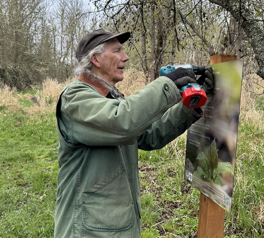 PAUL WOOLERY is a retired therapist who kept a private practice in Hood River until 2015. He has loved the Columbia Gorge since coming here in 1971 to work as a tractor driver in an Underwood pear orchard. The first poetry walk he saw was in 1973 along a trail in the tiny hamlet of Helvetia, West Virginia. Fifty years later, he discovered poems displayed on trails in the Olympic National Park, and was inspired to initiate the Indian Creek Poetry Walk. He is grateful to the many talented individuals who have contributed to its success.